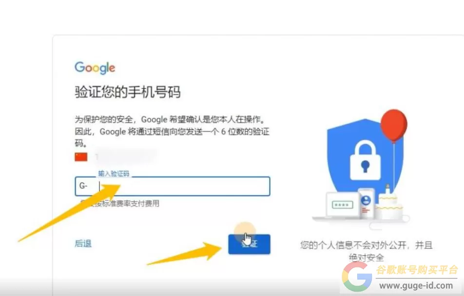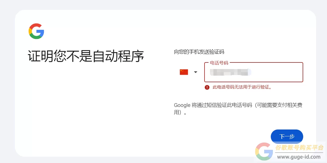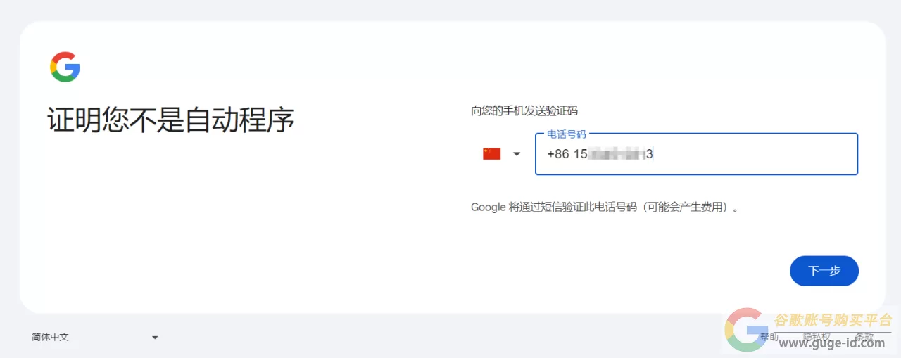2、使用一个没有注册过谷歌邮箱账号的手机号来进行注册。