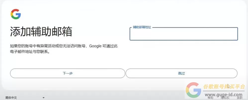 8、添加辅助邮箱,这里有别的平台的邮箱,可以添加一个,安全验证使用的,不想填写可以跳过!