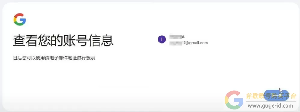 9、确认您的谷歌邮箱账号信息,没问题就下一步,需要记住哈,这个就是谷歌邮箱的登录账号。
